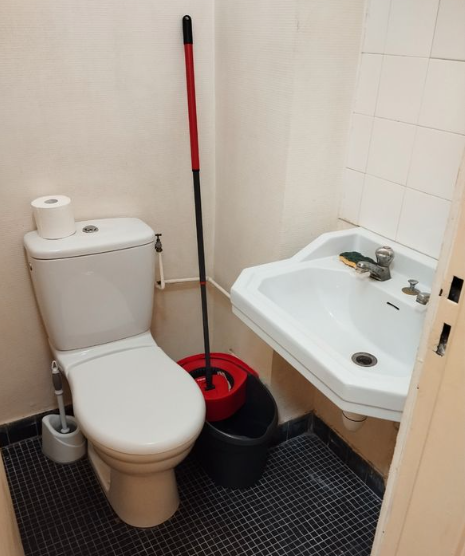 Cuisine, lit de 140x190 avec literie, rangements. Micro ondes, plaque de cuisson. Douche à l'intérieur du studio. Toilettes (très propres) sur le palier à partager avec un autre studio.